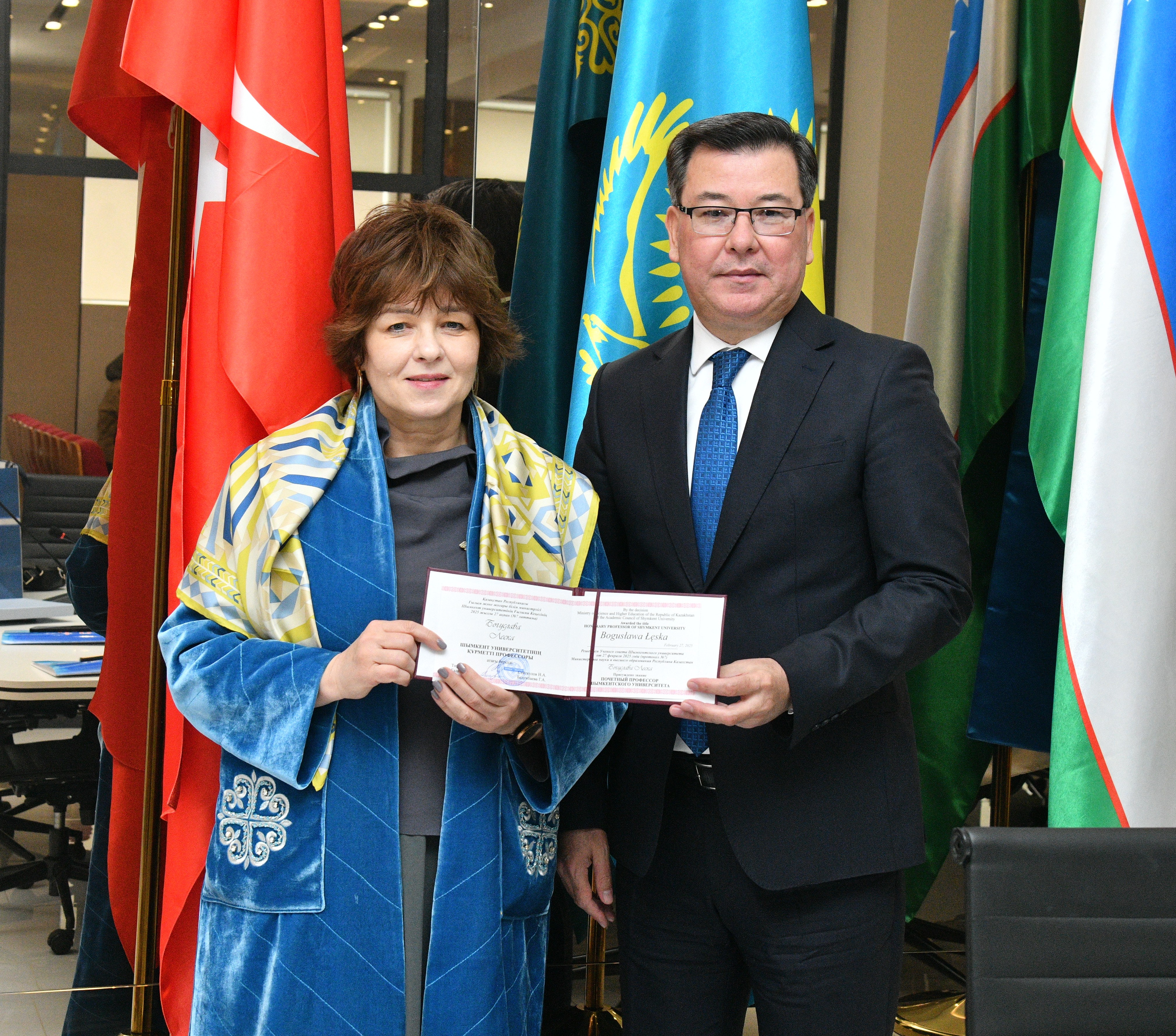 Делегация шымкентского университета во главе с проректором по “ науке и международным отношениям “д. б.н., профессором Исаевой Акмарал Омирбековной встретилась с директором “ школы точных наук докторантуры " Познанского университета им. А. Мицкевича профессором Богуславой леской и профессором Познанского университета Войцехом Антковиаком.